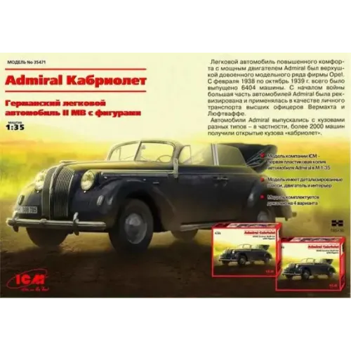 Збірна модель 1/35 Німецький легковий автомобіль Адмірал Кабріолет з фігурами (Друга світова війна) ICM 35471 з доставкою по всій Україні та магазинам Києва та Одеси.