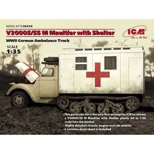 Збірна модель 1:35 Німецький санітарний автомобіль V3000S:SS M Maultier з укриттям ICM 35414