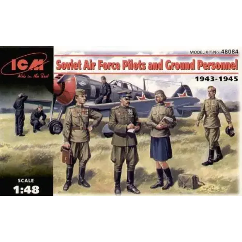 Набір містить пластикові деталі для складання трьох льотчиків і чотирьох техніків радянських ВПС.