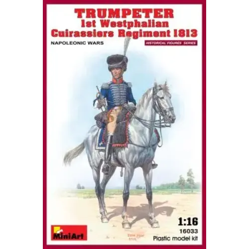 Збірна модель 1/16 Фігура Трубач 1-го Вестфальського Кірасирського Полку 1813 MiniArt 16033 з доставкою по всій Україні та магазинах Києва та Одеси.