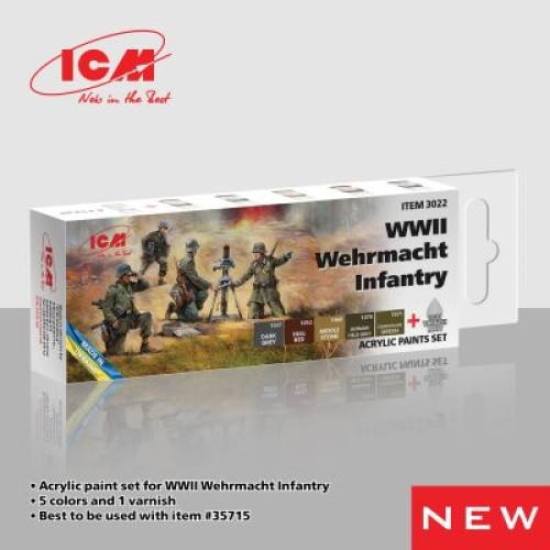 Набір акрилових фарб для піхоти Вермахту часів Другої світової війни ICM3022