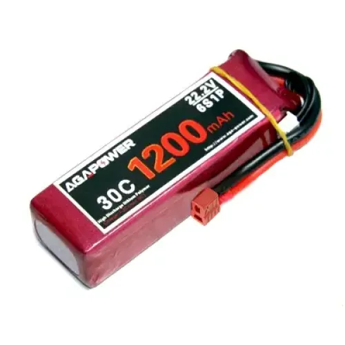 Аккумулятор AGA POWER литий-полимерный в мягком корпусе для авиамоделей. Ёмкость 1200mAh. Напряжение 22.2V. Коннектор: T-plug(Deans). Аккумулятор для вертолётов 450-го класса с конфигурацией под 22.2В (T-Rex 450L Dominator, Tarot).