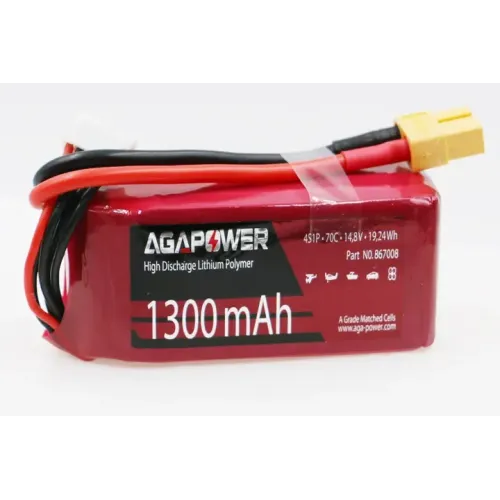 Акумулятори 14,8 V LiPo Аккумулятор AGA POWER Li-Pol 1300mAh 14.8V 4S 70C Softcase 32x34x72мм T-Plug