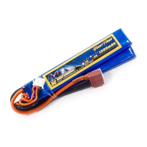 Аккумулятор для страйкбола Giant Power Li-Pol 7.4V 2S 1300mAh 25C 2 лепестка 7.5х20х103мм T-Plug