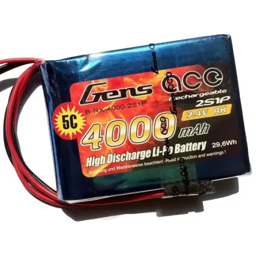 Аккумулятор Gens Ace LiPO 7,4 В 4000 мАч 1С 2S (B-RX-4000-2S1P) специально разработан для использования в аппаратурах Spektrum DX9, DX8, DX7S, DX7 и Futaba.
