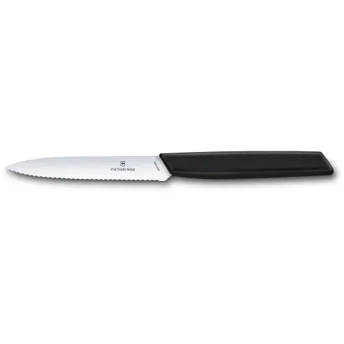 Легкий та компактний кухонний ніж для чищення Swiss Modern Paring з хвилястим лезом 10 см та сучасною ручкою чорного кольору.