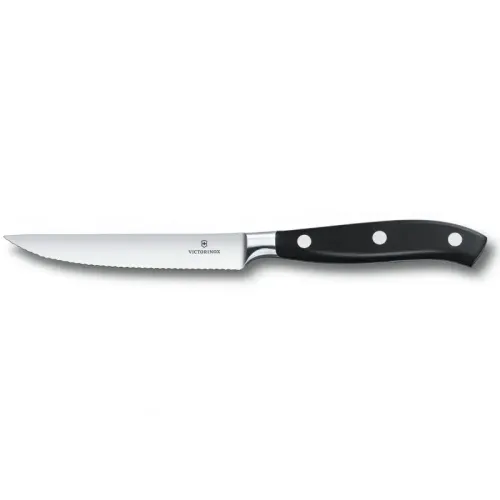 Елегантний швейцарський ніж Victorinox Grand Maitre Tomato&Steak 7.7203.12WG із професійної колекції кухонного інвентарю Grand Maitre (Гранд Метр). Компактний кований ніж із бритвенно-гострим серейторним лезом завдовжки 12 см. Ідеальний баланс у поєднанні з ергономічним руків'ям зі сталевими заклепками. Призначений для різання стейків з максимальною легкістю. Чудовий варіант для сервірування столу.