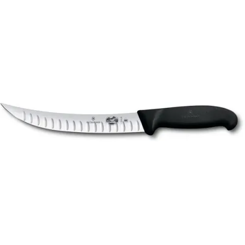 Рифлений ніж м'ясника Victorinox Fibrox Butcher 5.7223.20 із професійної лінійки Fibrox (Фіброкс). Ефективний дизайн з рифленим вигнутим лезом і фірмовим руків'ям Fibrox. Представлена модель буде максимально корисною для фахівців м'ясозаготівельних комбінатів або скотобійних цехів, а також для професійних м'ясників.