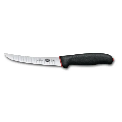 Обвалювальний ніж Victorinox Dual Grip з вигнутим рифленим лезом 15 см та двокомпонентним руків'ям. Спеціалізований ніж із лінійки Dual Grip для обвалювання м'яса, обробки туш. Вигнута форма додає маневреності ножу, а рифлене лезо (спеціальні повітряні кишені на бічній частині) мінімізують прилипання продукту до ножа під час роботи.