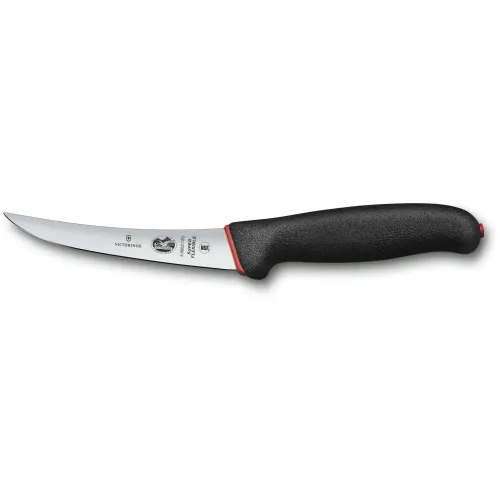 Обвалювальний ніж Dual Grip із супергнучким вигнутим лезом 12 см та двокомпонентним руків’ям. Інструмент з професійної лінійки Dual Grip з ергономічним дизайном знижує навантаження на зап'ясток, а вкорочене маневрене лезо з неіржавної сталі легко ковзає навіть по жорсткому і жирному м'ясу. З цим гострим та точним інструментом ви досягнете ідеально простого результату різання. Ніж ідеальний для фахівців м'ясопереробних виробництв, де потрібна висока точність та витривалість інструментів.