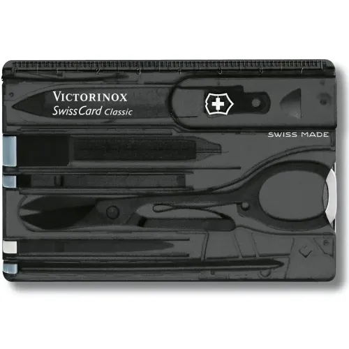 SWISS CARD CLASSIC (чорний) від Victorinox – компактний, багатозадачний набір у вигляді банківської картки на 10 функцій. Функціональна Швейцарська картка, щоб носити з собою у гаманці, кишені або рюкзаку.