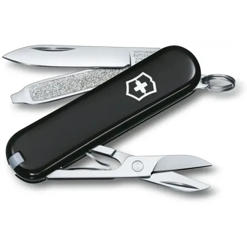 Victorinox CLASSIC SD 0.6223.B1 - швейцарський кишеньковий ніж у популярному форматі брелока. Стильні накладки чорного кольору з культовим логотипом бренда Вікторінокс у формі білого хреста на тлі щита. Ідеальний компаньйон на кожен день. Висококласна неіржавна сталь - це гордість компанії, адже вона має високу стійкість до механічних пошкоджень і антикорозійні властивості. Твердість сталевого сплаву індивідуально підбирається для кожної комплектуючої, виходячи з функціональних особливостей. Заточення різальних країв протягом довгого часу залишається ідеально гострим, а повернути колишню гостроту легко за допомогою точил, які ви також можете знайти в каталозі нашого фірмового магазину. Швейцарський ніж забезпечений маленьким клинком з гострим Plain-заточенням, який легко заточить олівець і наріже фрукти для ланчу. Як і у всіх моделях із серії Classic SD, пилочка для нігтів комбінована з невеликою плоскою викруткою 2,5 мм на кінці для невеликого екстреного ремонту. Класичним набір з пластикової зубочистки та пінцета (знаходиться в торці руків’ї) також є в цій моделі. *компактний 2-шаровий дизайн; *довжина ручки: 58 мм; *7 функцій; *чорні накладки з глянцевого пластику з емблемою; *інструменти з висококласної неіржавної сталі; *упаковка: блістер; *бренд: Victorinox, Швейцарія; *гарантія: довічна на якість матеріалів і збірку від виробника. Купити складаний ніж-брелок Вікторінокс Класік СД 0.6223.3B1 на нашому фірмовому сайті - це 100% оригінал і висока швейцарська якість. Оформлюйте замовлення і ми швидко доставимо ваш ніж у будь-яку точку України.