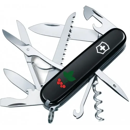 Є чудова пилка, здатна розпиляти невелику колоду. Ножиці та два дуже гострі леза завдовжки 3,5 і 6 см. Дві відкривачки (для консервних банок та пляшок) з плоскими викрутками різного розміру на кінці. З іншого боку – штопор, гачок, а також дірокол-кернер з вушком для зручного використання у ролі шила. Накладки містять слоти з пінцетом та зубочисткою. Сталеве кільце, щоб прикріпити ніж до ланцюжка або темляка.