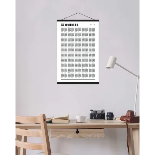 Постер #100 Wonders — уникальный чек-лист чудес со всего мира. Благодаря лаконичным цветам отлично впишется в любой интерьер.
