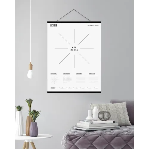 Dream Board — это мультифункциональный двусторонний борд из ламинированной бумаги. Мы вдохновились скандинавским минимализмом и создали его в черно-белом дизайне, который с легкостью впишется в любой интерьер. Используй одну сторону Dream Board для визуализации мечт с помощью техники «Колесо жизни», а на обратной стороне создавай планер и превращай мечты в конкретные цели. Ты можешь трансформировать Dream Board в Mood Board, прикрепив вырезки из журналов, аффирмации и любимые фотографии. Твой Dream Board — твои правила, а мы только даем подсказки.