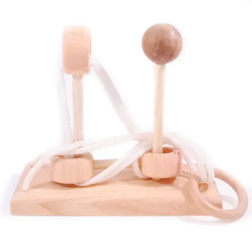 Это известная серия веревочных головоломок. Каждая из таких по своему уникальна и необычна. Вариаций головоломки Ушко иголки много, а вот решения у всех сложные. Тут потребуется вся ваша выдержка и сосредоточенность. Принцип решения везде схожий - снять колечко или достать веревку. Напоминает ушко иголки и нитку, с этим иногда тоже долго мучаешься. И только после решения этой сложной деревянной головоломки вы почувствуете вкус победы!