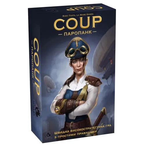 Coup: Паропанк є українською версією популярної гри Coup, що отримала оформлення у стилі стимпанк. Для тих, хто хоче спробувати свої сили в боротьбі за владу, буде необхідно використати свій вплив і хитрість, щоб перемогти суперників і розпоряджатися жадібністю королівського двору.
