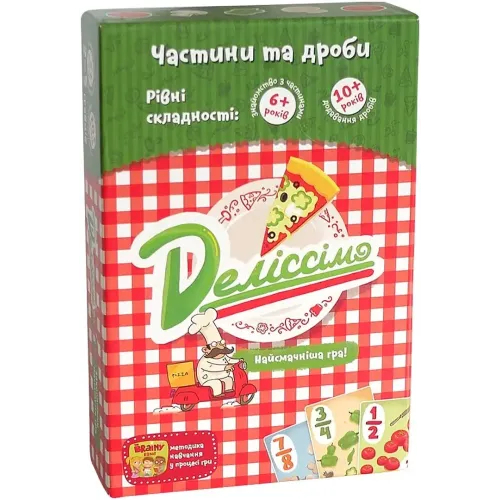 Налагодити з дробами - складне завдання. Але тільки не з настільною грою Деліссімо! Вирушаємо до піцерії і вважатимемо шматочки піци.