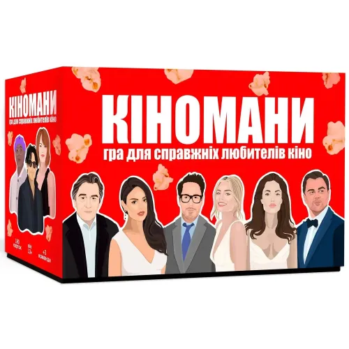 Настільна гра Кіномани дозволяє дізнатися багато нового про відомих акторів і культові фільми. Ви будете приємно здивовані цікавими фактами і веселими історіями з життя акторів, згадаєте улюблені фільми дитинства і станете справжнім кіноманом!