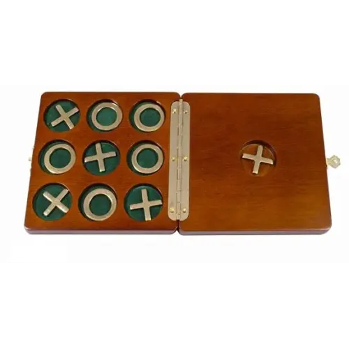 Однак цей набір пропонує зовсім інший рівень: стильний кейс із темного дерева та металеві фігури хрестиків і нуликів.