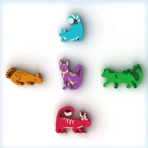 Ці фішки вирізняються своїм якісним виконанням. У наборі ви знайдете 30 дерев'яних котиків (по шість фігурок кожного кольору), які мають яскраву розмальовку та більший розмір. Вони не лише підвищать тактильні враження, але й порадують естетів своїм виглядом. Якщо ви є прихильником гри Острів Котів, обов'язково зверніть увагу на цей чудовий делюксовий комплект.
