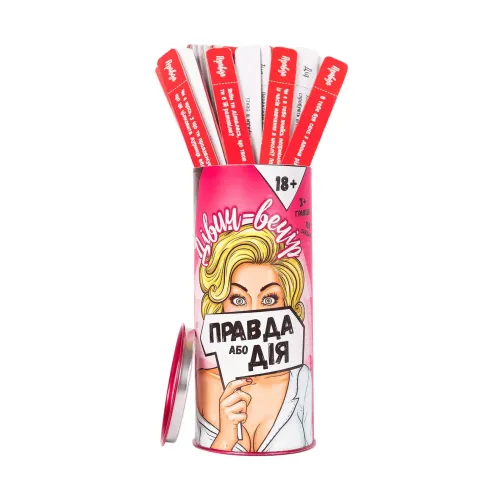 Ця гра обіцяє бути неймовірно веселою, азартною та захоплюючою, торкаючись інтимних і пікантних тем. Правда чи дія: Дівич-вечір стане чудовим подарунком і відмінною розвагою для галасливої компанії!