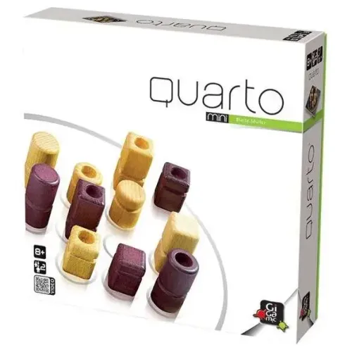Quarto Mini — це компактна версія оригінальної гри Quarto, відома своїм стильним виконанням і компонентами з високоякісного дерева. Правила прості, що робить її чудовим вибором для подорожей або швидких партій. З моменту свого створення в 1985 році гра отримала численні нагороди та здобула популярність у всьому світі, особливо після випуску від компанії Gigamic у 1991 році.