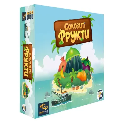 Соковиті фрукти – це цікава настільна гра, локалізована українським видавництвом Games7Days. Це сімейна економічна стратегія, в якій кожен учасник отримує власний острів, на якому збирає фрукти та наймає човни для доставки товарів відповідно до контрактів. Виконуючи контракти, гравці заробляють переможні бали, а той, хто назбирає їх найбільше до фіналу гри, стане справжнім фруктовим магнатом.