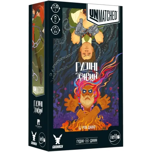У новому випуску серії ігор Unmatched зустрічаються двоє легендарних персонажів, чиї здібності поєднують ілюзії та магію: всесвітньо відомий майстер фокусів Гаррі Гудіні та втілення магічної сили Джин із Лампи Бажань. Ця дуельна гра стане чудовим доповненням до вашої колекції героїв та відкриє нові можливості для захоплюючих битв.