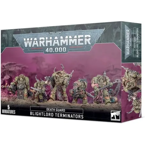 Blightlord Terminators — це втілення безжальної війни, елітні воїни Death Guard, які назавжди злилися зі своїми гротескними обладунками Cataphractii. Безперервно ведучи вогонь із своїх комбінованих болтів, вони безжально наступають, знищуючи хвилю за хвилею ворожих бійців. Озброєні викидами чуми та ураганом, вони перетворюють піхоту на звичайну нечистоту та перетворюють транспортні засоби на гнилі купи іржі та бруду.