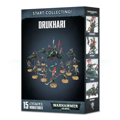 "Start Collecting! Dark Eldar" - это прекрасный набор, содержащий все необходимые детали для сборки полноценной боевой армии Темных Эльдар. Внутри коробки "Start Collecting! Dark Eldar" вы найдете лидера Темных Эльдар Архона (Archon), вместительный Рейдера на антигравитационной подушке (Raider), три быстрых Джетбайка (Reaver Jetbikes) и отряд из десяти воинов-Кабалитов.