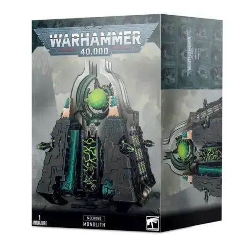 Necron Monolith втілює невблаганну природу сил Necrons. Виготовлений із живого металу, напіврозумного сплаву, який майже миттєво самовідновлюється, Monolith стоїть як фортеця на полі бою. Його пластинчаста броня робить його страшним ворогом, несприйнятливим до більшості нападів.