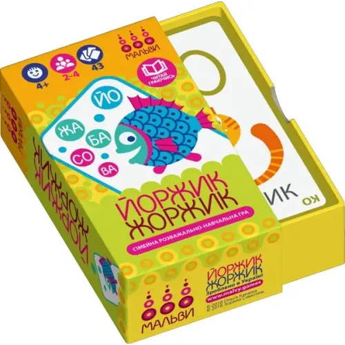 В яркой коробке вы найдете 42 пары карточек со слогами, включающие все согласные с буквами А и О, а также одну особую карту - Ёржик-Жоржик! В игре дети должны собирать парные карты, которые оформлены стильными мультяшными иллюстрациями. Победителем станет тот, кто в конце игры получит карту с Ёршиком.