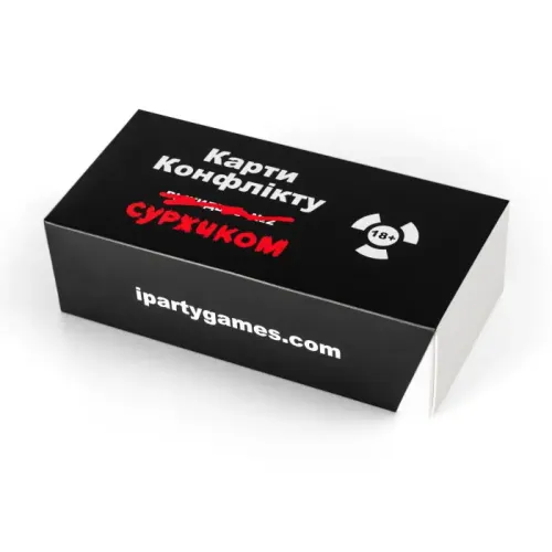 Купить настольную игру Карты Конфликта на суржике в Киеве можно в магазине настольных игр и моделирования CBGames. Доставка товара Карты Конфликта на суржике осуществляется курьером в Киеве (есть самовывоз) и компаниями грузоперевозчиками по Украине и другим странам мира.